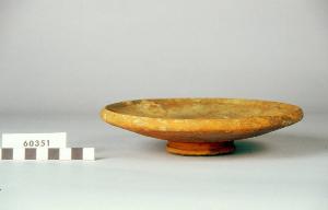 Patera con pareti leggermente rialzate, orlo leggermente introflesso, fondo convesso.