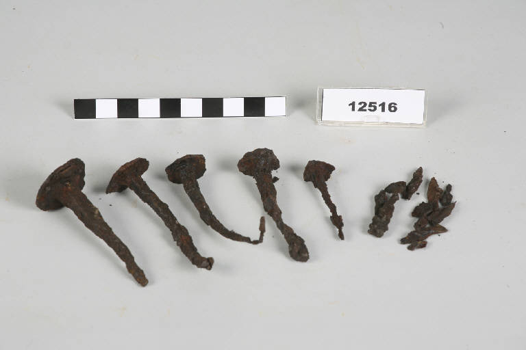 Chiodi con asta a sezione quadrangolare e capocchia circolare.