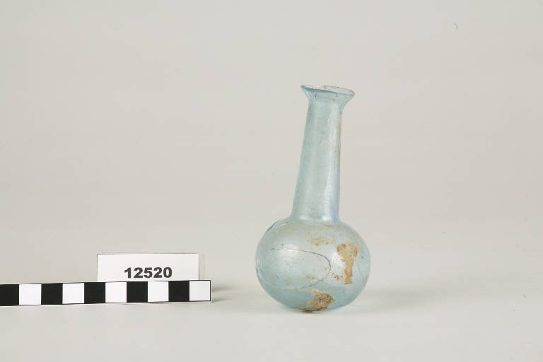 Balsamario con orlo estroflesso, corpo sferico e fondo piano.