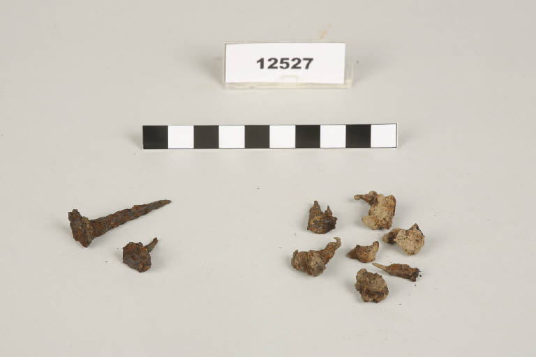 Due chiodi da lettiga e sette chiodini da calzatura.