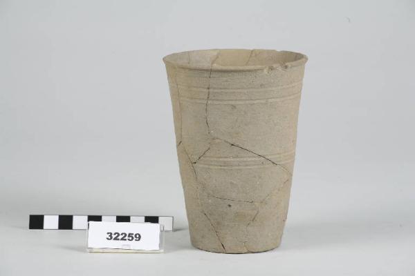 Bicchiere troncoconico con piccolo orlo orlo estroflesso e fondo lievemente concavo