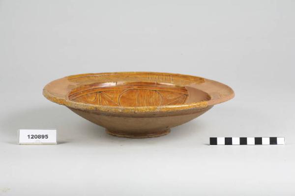 Scodellone in ceramica monocroma marrone, graffita a punta
