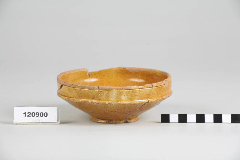 Tazza carenata in ceramica ingubbiata sotto vetrina monocroma marrone