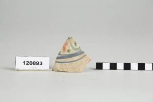 Frammento di vaso di forma chiusa in ceramica ingubbiata sotto vetrina con imitazione maiolica
