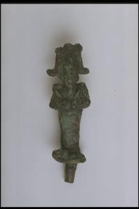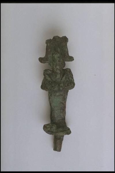 - NOTIZIE STORICO CRITICHE L'opera fa parte della raccolta egizia Giuseppe Acerbi (Castelgoffredo 1773 - 1846), costituita da reperti archeologici selezionati dall'erudito e scienziato naturalista mantovano - nominato nel 1826 Console Generale d'Austria in Egitto - tra Alessandria e Assuan, nella seconda metà degli anni Venti del XIX secolo. Entrata a far parte ufficialmente delle collezioni comunali di Mantova con il lascito di Agostino Zanelli, nipote ed unico erede dell'Acerbi, nel 1876, la raccolta ha conosciuto differenti collocazioni nel corso del tempo, fino all'attuale.\nL'esemplare é compreso nel gruppo di statuette votive - prevalentemente in bronzo - tipiche del periodo compreso tra la XXVI dinastia e l'età tolemaico-romana e rappresentanti l'intero pantheon egizio. Il dio Osiride, con caratteristico copricapo e insegne regali rette dai pugni sul petto, è rappresentato secondo la tipologia del Medio Egitto.