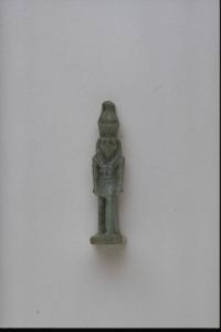 - NOTIZIE STORICO CRITICHE L'opera fa parte della raccolta egizia Giuseppe Acerbi (Castelgoffredo 1773 - 1846), costituita da reperti archeologici selezionati dall'erudito e scienziato naturalista mantovano - nominato nel 1826 Console Generale d'Austria in Egitto - tra Alessandria e Assuan, nella seconda metà degli anni Venti del XIX secolo. Entrata a far parte ufficialmente delle collezioni comunali di Mantova con il lascito di Agostino Zanelli, nipote ed unico erede dell'Acerbi, nel 1876, la raccolta ha conosciuto differenti collocazioni nel corso del tempo, fino all'attuale.\nL'amuleto rientra in un cospicuo gruppo di oggetti analoghi per tipologia e funzione (apotropaica/magica) e, tra questi, nella serie di amuleti raffiguranti divinità. Il dio Horus é rappresentato con la sua caratteristica doppia corona dell'Alto e Basso Egitto; la figura, in piedi, ripete fedelmente nella tipologia, nel modellato e nei particolari il tipo corrispondente della statuaria. Base rettangolare e pilastro dorsale.