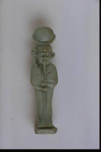 - NOTIZIE STORICO CRITICHE L'opera fa parte della raccolta egizia Giuseppe Acerbi (Castelgoffredo 1773 - 1846), costituita da reperti archeologici selezionati dall'erudito e scienziato naturalista mantovano - nominato nel 1826 Console Generale d'Austria in Egitto - tra Alessandria e Assuan, nella seconda metà degli anni Venti del XIX secolo. Entrata a far parte ufficialmente delle collezioni comunali di Mantova con il lascito di Agostino Zanelli, nipote ed unico erede dell'Acerbi, nel 1876, la raccolta ha conosciuto differenti collocazioni nel corso del tempo, fino all'attuale.\nL'amuleto rientra in un cospicuo gruppo di oggetti analoghi per tipologia e funzione (apotropaica/magica) e, tra questi, nella serie di amuleti raffiguranti divinità. Il dio lunare Khensu - l'astro che sempre scompare e ritorna - é rappresentato in forma umana crisaliforme, con capo parzialmente rasato e ciocca di capelli ricadente sulla spalla destra. Il diadema é formato dal crescente e disco lunare. Il dio impugna uno scettro.