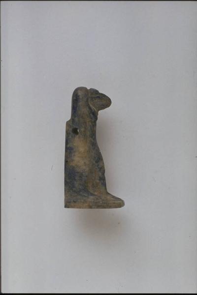 - NOTIZIE STORICO CRITICHE L'opera fa parte della raccolta egizia Giuseppe Acerbi (Castelgoffredo 1773 - 1846), costituita da reperti archeologici selezionati dall'erudito e scienziato naturalista mantovano - nominato nel 1826 Console Generale d'Austria in Egitto - tra Alessandria e Assuan, nella seconda metà degli anni Venti del XIX secolo. Entrata a far parte ufficialmente delle collezioni comunali di Mantova con il lascito di Agostino Zanelli, nipote ed unico erede dell'Acerbi, nel 1876, la raccolta ha conosciuto differenti collocazioni nel corso del tempo, fino all'attuale.\nL'amuleto rientra in un cospicuo gruppo di oggetti analoghi per tipologia e funzione (apotropaica/magica) e, tra questi, nella serie di amuleti raffiguranti divinità. Khnum, dio che modella il corpo dell'uomo e il suo "ka", é rappresentato secondo l'usuale iconografia - con corpo umano e testa d'ariete - qui seguita puntigliosamente. La superficie é lievemente consunta.