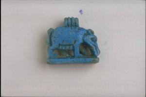 - NOTIZIE STORICO CRITICHE L'opera fa parte della raccolta egizia Giuseppe Acerbi (Castelgoffredo 1773 - 1846), costituita da reperti archeologici selezionati dall'erudito e scienziato naturalista mantovano - nominato nel 1826 Console Generale d'Austria in Egitto - tra Alessandria e Assuan, nella seconda metà degli anni Venti del XIX secolo. Entrata a far parte ufficialmente delle collezioni comunali di Mantova con il lascito di Agostino Zanelli, nipote ed unico erede dell'Acerbi, nel 1876, la raccolta ha conosciuto differenti collocazioni nel corso del tempo, fino all'attuale.\nL'amuleto rientra in un cospicuo gruppo di oggetti analoghi per tipologia e funzione (apotropaica/magica) e, tra questi, nella serie di 22 amuleti raffiguranti animali, la cui venerazione interessa l'Egitto dal periodo storico fino all'Età Romana. La scrofa rappresenta un'offerta rituale a Osiride; l'animale é raffigurato con esuberanti mammelle; poggia su una base, sulla quale pare in atto di incedere.