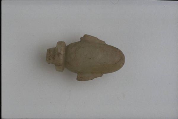 - NOTIZIE STORICO CRITICHE L'opera fa parte della raccolta egizia Giuseppe Acerbi (Castelgoffredo 1773 - 1846), costituita da reperti archeologici selezionati dall'erudito e scienziato naturalista mantovano - nominato nel 1826 Console Generale d'Austria in Egitto - tra Alessandria e Assuan, nella seconda metà degli anni Venti del XIX secolo. Entrata a far parte ufficialmente delle collezioni comunali di Mantova con il lascito di Agostino Zanelli, nipote ed unico erede dell'Acerbi, nel 1876, la raccolta ha conosciuto differenti collocazioni nel corso del tempo, fino all'attuale.\nL'amuleto rientra in un cospicuo gruppo di oggetti analoghi per tipologia e funzione (apotropaica/magica) e, tra questi, nella serie di 36 amuleti raffiguranti simboli. Il cuore umano ("ib" o "ati" nel Libro dei Morti) - simbolo di vita e volontà, amuleto frequente dalla XXVI dinastia al periodo romano - é rappresentato in forma ovoidale stilizzata. La parte superiore con anello consentiva la sospensione dell'oggetto alla veste.