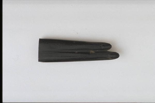 - NOTIZIE STORICO CRITICHE L'opera fa parte della raccolta egizia Giuseppe Acerbi (Castelgoffredo 1773 - 1846), costituita da reperti archeologici selezionati dall'erudito e scienziato naturalista mantovano - nominato nel 1826 Console Generale d'Austria in Egitto - tra Alessandria e Assuan, nella seconda metà degli anni Venti del XIX secolo. Entrata a far parte ufficialmente delle collezioni comunali di Mantova con il lascito di Agostino Zanelli, nipote ed unico erede dell'Acerbi, nel 1876, la raccolta ha conosciuto differenti collocazioni nel corso del tempo, fino all'attuale.\nL'amuleto rientra in un cospicuo gruppo di oggetti analoghi per tipologia e funzione (apotropaica/magica) e, tra questi, nella serie di 36 amuleti raffiguranti simboli. Le due dita qui rappresentate costituiscono assicurazione dell'aiuto di Horus al defunto per salire le scale del cielo di Osiride o, secondo altra versione, simbolo del rito dell'apertura della bocca del defunto. Molto curati i dettagli (pieghe della pelle, unghie).