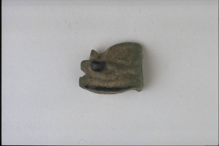 - NOTIZIE STORICO CRITICHE L'opera fa parte della raccolta egizia Giuseppe Acerbi (Castelgoffredo 1773 - 1846), costituita da reperti archeologici selezionati dall'erudito e scienziato naturalista mantovano - nominato nel 1826 Console Generale d'Austria in Egitto - tra Alessandria e Assuan, nella seconda metà degli anni Venti del XIX secolo. Entrata a far parte ufficialmente delle collezioni comunali di Mantova con il lascito di Agostino Zanelli, nipote ed unico erede dell'Acerbi, nel 1876, la raccolta ha conosciuto differenti collocazioni nel corso del tempo, fino all'attuale.\nL'amuleto rientra in un cospicuo gruppo di oggetti analoghi per tipologia e funzione (apotropaica/magica) e, tra questi, nella serie di 36 amuleti raffiguranti simboli. L'occhio di Horus ("udat") rappresenta un occhio umano con i solchi lacrimali del falco e ha valore apotropaico o sanatore. Molte le varianti iconografiche. L'amuleto in esame, lavorato su una sola faccia, reca tracce di colore nero per pupilla e sopracciglio.