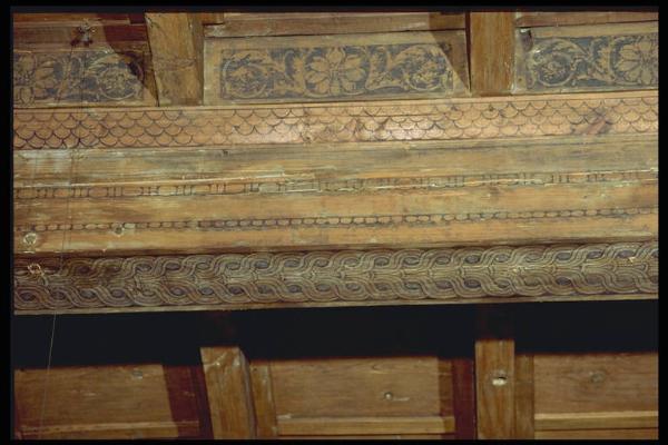 Soffitto ligneo con quattro travi dipinte