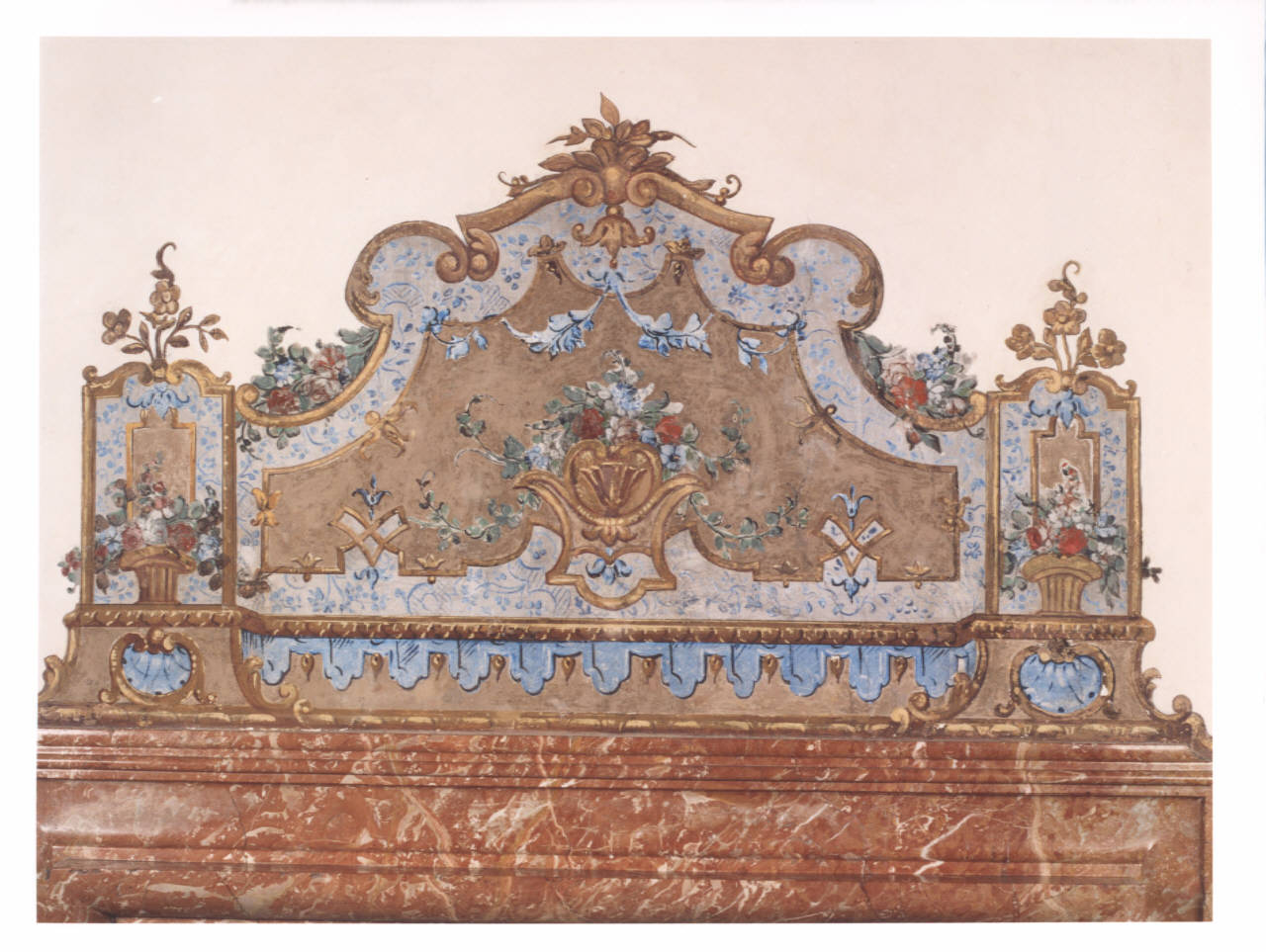 - NOTIZIE STORICO CRITICHE La caminiera, come la decorazione a tempera su muro che la sormonta è collocabile nel secolo XVIII, collegandosi perfettamente all'intera decorazione della stanza.