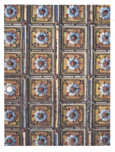 - NOTIZIE STORICO CRITICHE Soffitto dipinto a passasotto con motivo a lacunari arricchiti da rosette dipinte a tempera. Nella prima metà del Settecento la decorazione era stata coperta con una grande tela raffigurante una cupola.