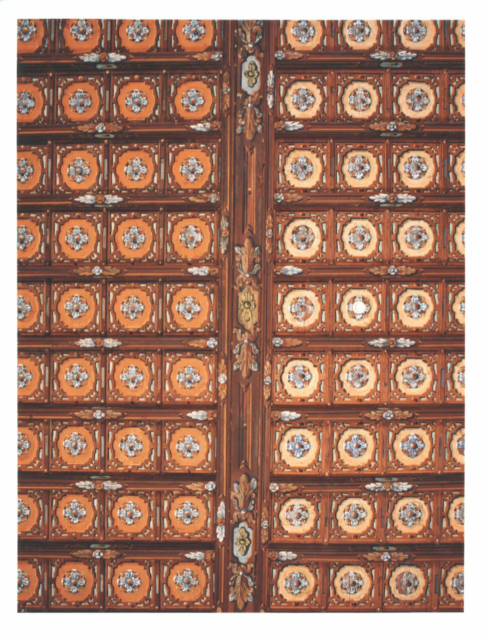 Soffitto ligneo a cassettoni formato da rosoncini.