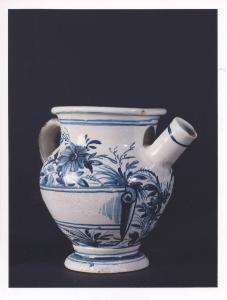 - NOTIZIE STORICO CRITICHE Vaso da farmacia proveniente dalla farmacia Barberis, attiva in Bistagno (Alessandria) dalla prima metà del XIX secolo. L'iscrizione testimonia l'originario contenuto del boccale: uno sciroppo. In assenza del marchio della manifattura di produzione non si riesce a determinare se l'oggetto proviene da Savona o Albisola. La produzione dei due centri liguri ebbe infatti inizio con caratteri distinti e separati, ma finì per fondersi in uno stile e in una tecnica pressochè uguali.