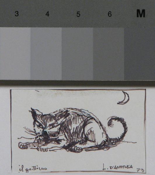 - NOTIZIE STORICO CRITICHE Il disegno risulta eseguito apposta per Angela Candiani (2000, comunicazione orale).\nD'Andrea infatti, che aveva conosciuto Davide Lajolo grazie all'amico comune Fausto Liberatore, da allora era in rapporti amichevoli sia con lo scrittore che con la Candiani, sua compagna, alla quale sono dedicati molti dei lavori del pittore conservati in collezione.\nQuesto in particolare è realizzato in maniera estemporanea, come dimostra anche il tipo di carta utilizzata: la pagina finale (quella in cui compaiono i nomi degli artisti trattati dalla galleria) di un catalogo pubblicato probabilmente in occasione di una sua mostra.\nLa Candiani ricorda che egli passava di frequente al giornale e lasciava disegni eseguiti sul momento, tracciati, come questo, in maniera molto veloce (2000, comunicazione orale). \nNella testimonianza raccolta, la Candiani non specifica però se si trattasse della sede della rivista "Tempo Illustrato", dove in quegli anni lavorava lei stessa (1960-1974), di quella di "Giorni Vie Nuove", settimanale allora diretto da Lajolo (1969-1978), oppure di quella de "Il Mondo", dove per un periodo hanno lavorato sia lei che Lajolo tra il 1975 e il 1978.\nCon "Giorni Vie Nuove" D'Andrea collabora tra il 1974 e il 1975, accompagnando con suoi disegni le pagine del romanzo di Lajolo "Diario spregiudicato del dopoguerra", pubblicato a puntate sul settimanale.