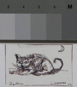 gatto accucciato con mezzaluna in alto a destra