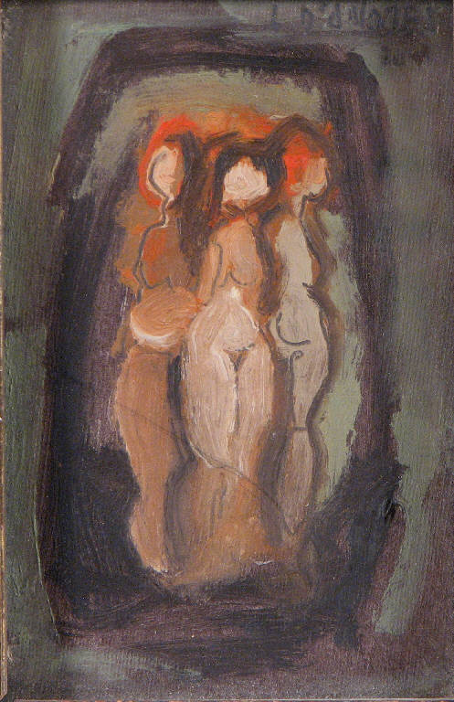al centro del dipinto, incorniciate da una linea scura che traccia una sorta di ovale sul fondo grigio-verde, vi sono tre nudi femminili, posizionati secondo l'iconografia classica delle Tre Grazie; alcuni tratti dei profili delle donne sono come segnati con la matita