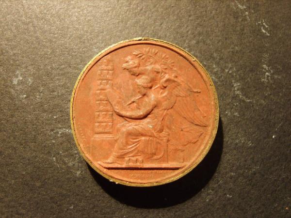 Calco circondato da una fascetta in carta bordata d'oro; il diametro del calco, compresa la fascetta, è di cm 4.2.