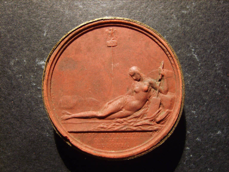 Calco circondato da una fascetta in carta bordata d'oro; il diametro del calco, compresa la fascetta, è di cm 4.1.