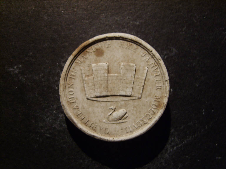 Cigno e corona turrita celebrativi della capitolazione di Mantova nel 1907