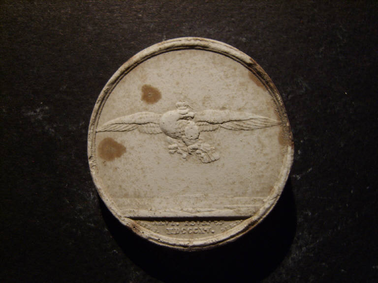Allegoria del ritorno di Napoleone con un'aquila coronata con il distintivo della Legione d'Onore nel becco che si allontana da un'isola