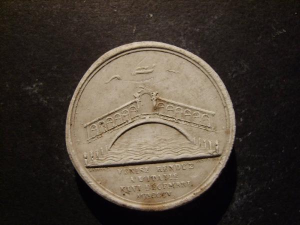 Medaglia commemorativa della restituzione di Venezia all'Italia. Ponte di Rialto a Venezia