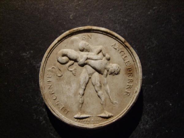 Medaglia commemorativa del passaggio in Inghilterra. Eroe lotta con Tritone