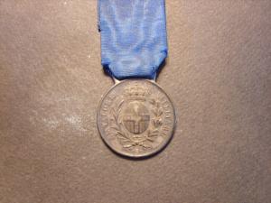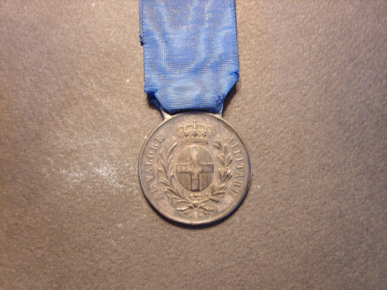 Medaglia appesa ad un nastro di seta blu.