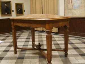 Ha piedi a sezione quadrata rastremata e ripiano inclinato decorato alla base con volutelle.