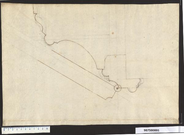 - NOTIZIE STORICO CRITICHE Si tratta di un disegno di dettaglio relativo a un serramento e in particolare del punto in cui l'anta è incernierata allo stipite. La modanatura piuttosto elaborata dello stipite induce a pensare che si tratti di una porta per un locale di rappresentanza o comunque importante. Potrebbe essere associato alla sagoma per porte dell'ultima camera parata (Milano, Collezione Sardini Martinelli inv. 9,68a).