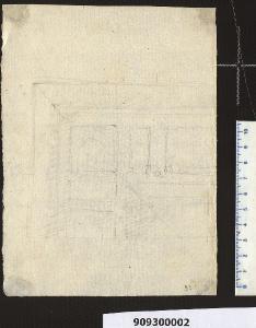 - NOTIZIE STORICO CRITICHE Il marchese Giacomo Sardini aveva messo su carta le proprie idee a proposito della decorazione del soffitto della sala principale nella villa a Pieve Santo Stefano (Milano, Collezione Sardini Martinelli inv. 9,92), per la cui ristrutturazione si era largamente avvalso di consigli e disegni inviatigli da Carlo Bianconi (ibidem, 9,54; 9,96; 9,86). Il pittore incaricato dell'esecuzione fu il non meglio noto Paolo Muzzarelli, il quale aveva annunciato in una lettera al marchese, spedita da Bologna il 15 settembre 1778, l'invio dei propri disegni per il soffitto (Archivio di Stato di Lucca, Archivio Sardini=AS, cart. 142, n. 674). Il committente era uso inviare agli artefici contattati propri schizzi per comunicare l'idea del risultato atteso. L'iscrizione che si legge sul recto del presente foglio dove è tracciato uno studio di Muzzarelli ("Vari studj di soffitti di Paolo Muzzarelli per adattarsi alle misure che poi ridusse sul mio schizzo") lascia ipotizzare che il disegno in esame sia di Sardini. Con questo schizzo il committente avrebbe delimitato l'apporto del pittore alla campiture poste attorno al settore centrale, quadrangolare. Gli studi di Muzzarelli (Milano, Collezione Sardini Martinelli inv. 9,93r; 9,83; 9,95) mostrano il tentativo, da parte del pittore, di suggerire una decorazione centrale di sagoma ovale, in parte apparentata con l'idea di Bianconi (Milano, Collezione Sardini Martinelli inv. 9,86), ovale però da affiancare con ulteriori campiture decorative. \nLa villa fu demolita intorno al 1930.