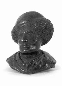 - NOTIZIE STORICO CRITICHE Il pezzo in esame rappresenta probabilmente una replica del fortunato Bustino autoritratto realizzato da Andrea Riccio intorno al 1510-1515 circa, ndel quale si conoscono tre esemplari: il primo conservato presso il Kunsthistorisches Museum, Vienna, il secondo al Louvre, Parigi, mentre una terza copia, in collezione privata, è documentata fino al 1929.\nSono piuttosto in dubbio se accettare la proposta di Chiara Pidatellam, che ha compilato questa scheda, di considerare il nostro bronzetto una copia e non una replica. Il nostro esemplare sembra del tutto simile a quello conservato a Vienna, Kunsthistorisches Museum, KunstKammer, inv. KK 5516, con il quale condivide anche la presentazione con una base leggermente stondata (mentre l'esemplare del Louvre e quello nella collezione Emil Winberger di Vienna presentano un taglio liscio). \nMarco Albertario