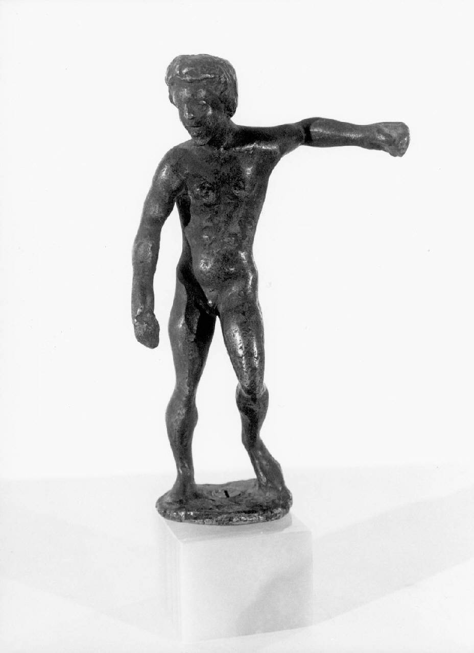 Giovane nudo con braccio sinistro alzato