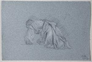 FIGURA DI GIOVANE DONNA: figura di giovane donna china di spalle (recto). FIGURA DI GIOVANE DONNA: figura di giovane donna inginocchiata; mani (verso); carta azzurra; gessetto bianco