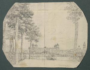 - NOTIZIE STORICO CRITICHE Si tratta molto probabilmente della Reggia di Colorno, nei pressi di Parma (i cui lavori di abbellimento vennero completati da Ferdinando Galli Bibiena tra il 1699 ed il 1701 e quindi tra il 1708 e il 1711), come indica il confronto con l'edificio in questione. Il modo di comporre la scena inquadrandola in un giardino con statue risente comunque dei modi bibieneschi.