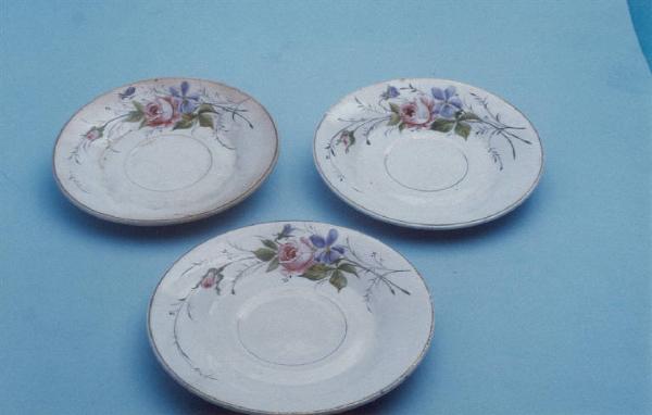 - NOTIZIE STORICO CRITICHE Il piattino in esame, facente parte di un servizio da caffè (nn. inv. 1598-1602), è decorato con un motivo floreale dipinto a mano sottosmalto. Lo stile naturalistico, di minuziosa mimesi della realtà, con effetti tridimensionali e luministici indica una datazione all'inizio del Novecento. Il numero finale presente a tergo potrebbe indicare la data di fabbricazione (1908): tuttavia, in mancanza di dati certi, si preferisce mantenere una datazione generica. Nella fotografia l'oggetto schedato è quello in alto a sinistra.