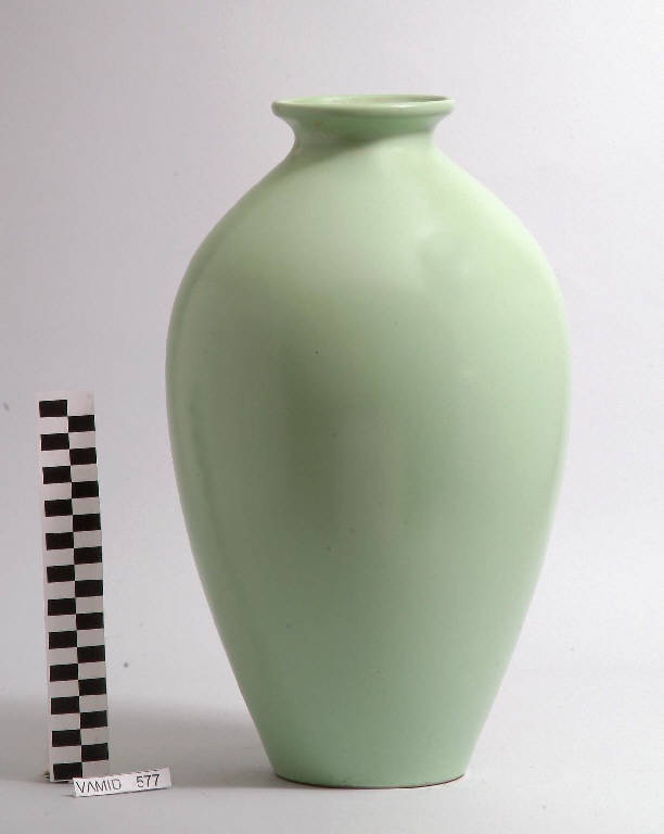 Vaso con corpo globulare; imboccatura estroflessa; fondo verde uniforme.
