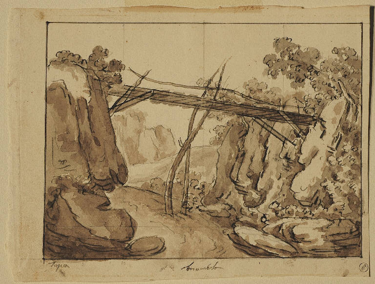 - NOTIZIE STORICO CRITICHE Il disegno è interessante poichè compare il riferimento autografo a Luigi Tasca, autore attivo a Perugia e Livorno nel primo quarto del sec. XIX, di cui la raccolta Lampugnani presenta altri rari esempi. Riporta inoltre l'indicazione dell'opera di riferimento, la Sonnanbula, ed al verso un'iscrizione che segnala che la scena venga dipinta "quanto più possibile attaccata alla prima cantoniera". Si possono confrontare le incisioni, ricavate da disegni originali di Tasca, prodotte da Francesco Inghirami (Volterra 1772 - Fiesole 1846) conservate presso il Museo Teatrale alla Scala di Milano (n. 2996 del catalogo).