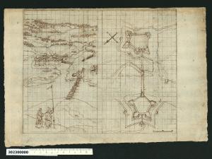 - NOTIZIE STORICO CRITICHE Nell'"Indice" del tomo nel quale era rilegato il disegno viene definito: "Altro forte su confini della Turchia". \nLa descrizione riportata nell'indice di Sardini è l'unico punto di riferimento che consente di identificare il soggetto del disegno, in quanto non esistono iscrizioni che possano fornire ulteriori indicazioni. Il disegno è sicuramente un rilievo essendo tracciato sul foglio all'interno di una maglia quadrettata che doveva facilitarne l'esecuzione in scala.\nSi tratta in realtà di due rappresentazioni su un unico foglio: la prima è una veduta prospettica con una fortezza posta sulle rive di un fiume, un ponte di legno che, partendo da una torre sulla riva, lo attraversa e due figure in costume, di cui quella maschile regge un'asta con una bandiera; la seconda raffigura due fortezze pentagonali circondate dall'acqua, che si affacciano su un fiume (probabilmente il Danubio) e sono collegate tra loro da un ponte che lo attraversa. Questa rappresentazione, una vista prospettica quasi perpendicolare, è orientata e in scala. \nSull'autore e sul periodo di realizzazione del disegno si possono fare solo delle ipotesi. Il soggetto indicato da Sardini potrebbe essere confermato dalla fattura del costume dei due personaggi (l'uomo indossa un turbante in uso tra gli ottomani), il periodo potrebbe essere associato al conflitto austro-turco (1683-1699) e l'ideatore di questa rappresentazione potrebbe essere il bolognese Luigi Ferdinando Marsili o Marsigli, ingegnere militare e scienziato che fu, tra l'altro, impegnato nella rilevazione di piante topografiche e prese parte alle campagne militari in territorio Austro-Ungarico nel periodo del conflitto contro i Turchi (per le notizie su Marsili, cfr. la scheda del disegno in Milano, Collezione Sardini Martinelli inv. 3,18).