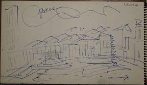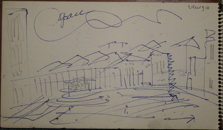 - NOTIZIE STORICO CRITICHE Congdon si è raramente dedicato al disegno come forma espressiva autonoma, così la mole di disegni raccolti sui taccuini non sono altro che appunti visivi presi durante numerosi viaggi. In questo senso non è possibile, se non raramente, assegnare al singolo disegno un'opera finita direttamente corrispondente, così questi disegni non vengono nemmeno ad essere schizzi preparatori. La sommatoria di tutti i disegni relativi a un luogo danno origine a una serie di dipinti che non hanno un corrispettivo oggettivo nei disegni stessi. Tutto questo giustifica la presenza degli appunti all'interno delle immagini (colori, sfumature e spiegazioni di vario genere). Le città marinare sono nei taccuini di Congdon uno dei soggetti più presenti, data la sua abitudine di viaggiare in nave. Qui si sofferma nella descrizione dei posti più significativi da un punto di vista storico artistico; in particolare indugiando sui palazzi che si affacciano sui canali, dei campi con i caratteristici pozzi al centro, fino alle scene portuali e ai turisti affollati sul vaporetto.