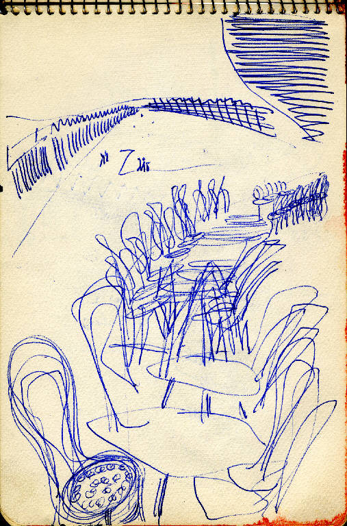 - NOTIZIE STORICO CRITICHE Congdon si è raramente dedicato al disegno come forma espressiva autonoma, così la mole di disegni raccolti sui taccuini non sono altro che appunti visivi presi durante numerosi viaggi. In questo senso non è possibile, se non raramente, assegnare al singolo disegno un'opera finita direttamente corrispondente, così questi disegni non vengono nemmeno ad essere schizzi preparatori. La sommatoria di tutti i disegni relativi a un luogo danno origine a una serie di dipinti che non hanno un corrispettivo oggettivo nei disegni stessi. Tutto questo giustifica la presenza degli appunti all'interno delle immagini (colori, sfumature e spiegazioni di vario genere). Le città marinare sono nei taccuini di Congdon uno dei soggetti più presenti, data la sua abitudine di viaggiare in nave. Qui si sofferma nella descrizione dei posti più significativi da un punto di vista storico artistico ma non disdegna i dettagli quotidiani delle folle dei turisti come dei risvolti più privati che incontra nel suo soggiorno. Conosciamo così i dettagli dell'arredo degli interni (dal bar alla stanza d'albergo). Nei disegni veneziani il tratto si fa particolarmente ricco per arrivare a descrivere tutti gli archi di piazza San Marco, il brulichio delle folle viste dall'alto a passeggio sulle rive del canal grande ecc ecc. fino alle fantasie fiorate dei vestiti delle signore ai tavolini del bar. Le stanze d'albergo, qui come in altri taccuini, non possono non riportare alla memoria gli interni di Matisse, tanto dettagliati nella ricchezza di particolari da diventare un unico lavorio di superficie.