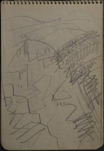 - NOTIZIE STORICO CRITICHE Congdon si è raramente dedicato al disegno come forma espressiva autonoma, così la mole di disegni raccolti sui taccuini non sono altro che appunti visivi presi durante numerosi viaggi. In questo senso non è possibile, se non raramente, assegnare al singolo disegno un'opera finita direttamente corrispondente, così questi disegni non vengono nemmeno ad essere schizzi preparatori. La sommatoria di tutti i disegni relativi a un luogo danno origine a una serie di dipinti che non hanno un corrispettivo oggettivo nei disegni stessi. Accanto alla produzione di disegni paesaggistici, soggetto quasi esclusivo nei taccuini di viaggio di Congdon, compaiono sporadicamente temi diversi. Nel viaggio a Santorini del 1955 l'artista è colpito non solo dalla grandezza naturalistica del luogo, ma anche da alcune piccolezze tipiche del villaggio, dalle casette arroccate ai pesci appena pescati. Il tutto sempre raccontato con grande economia di segni eppure con grande espressività ed esattezza.