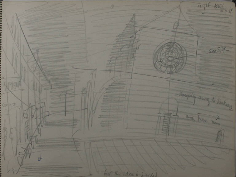 - NOTIZIE STORICO CRITICHE Congdon si è raramente dedicato al disegno come forma espressiva autonoma, così la mole di disegni raccolti sui taccuini non sono altro che appunti visivi presi durante numerosi viaggi. In questo senso non è possibile, se non raramente, assegnare al singolo disegno un'opera finita direttamente corrispondente, così questi disegni non vengono nemmeno ad essere schizzi preparatori. La sommatoria di tutti i disegni relativi a un luogo danno origine a una serie di dipinti che non hanno un corrispettivo oggettivo nei disegni stessi. Tutto questo giustifica la presenza degli appunti all'interno delle immagini (colori, sfumature e spiegazioni di vario genere). Nel 1954 Congdon viaggiando per l'Italia dedica un taccuino al passaggio tra Assisi e Orvieto. Vediamo così susseguirsi disegni di architetture assisiate (San Francesco, San Rufino e Santa Chiara) insieme ai paesaggi della campagna dell'alto Lazio.