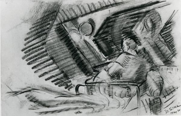 - NOTIZIE STORICO CRITICHE I disegni del periodo di guerra, 1942-45, costituiscono le prime prove autonome e non accademiche di Congdon. Mentre è ambulanziere con l'American Field Service, organizzazione volta al soccorso dei feriti sul campo di battaglia, nasce in Congdon una nuova vena artistica prima inespressa. Segue in questo periodo gli spostamenti del VIII armata Britannica, il che lo porta da El Alamein al campo di concentramento di Bergen Belsen, fino all'Italia del Sud nel primo dopo guerra. Si tratta di schizzi realizzati a matita, carboncino, sanguigna... su fogli di taccuino che Congdon realizza "in presa diretta". Soggetto ugualmente ricorrente sono i luoghi in cui la guerra si è svolta: un cimitero tedesco nel mezzo del deserto, una sala di teatro trasformata in ospedale femminile, la nave ospedale o le rovine di un hotel di lusso in seguito ai bombardamenti.