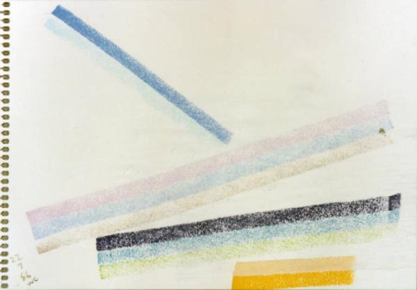 - NOTIZIE STORICO CRITICHE Il paesaggio marino della riviera adriatica, dove Congdon negli anni Ottanta era solito trascorrere le sue estati, subiscono lo stesso trattamento del paesaggio agreste della Bassa milanese. A partire dalle prime vedute più descrittive, lo scenario costiero si riduce a una partitura segnica di elementi che nell'ormai consueta sintesi di un solo tratto descrivono le componenti del paesaggio: sole, cielo, mare, spiaggia. Questi elementi chiave vengono così riassunti in un solo segno che diventa la traccia luminosa di ciò che rappresenta. Il resto della composizione, il senso spaziale e atmosferico della stessa, è affidato al colore del supporto stesso che viene ravvivato dai segni ortogonali, curvi o obliqui che lo percorrono.