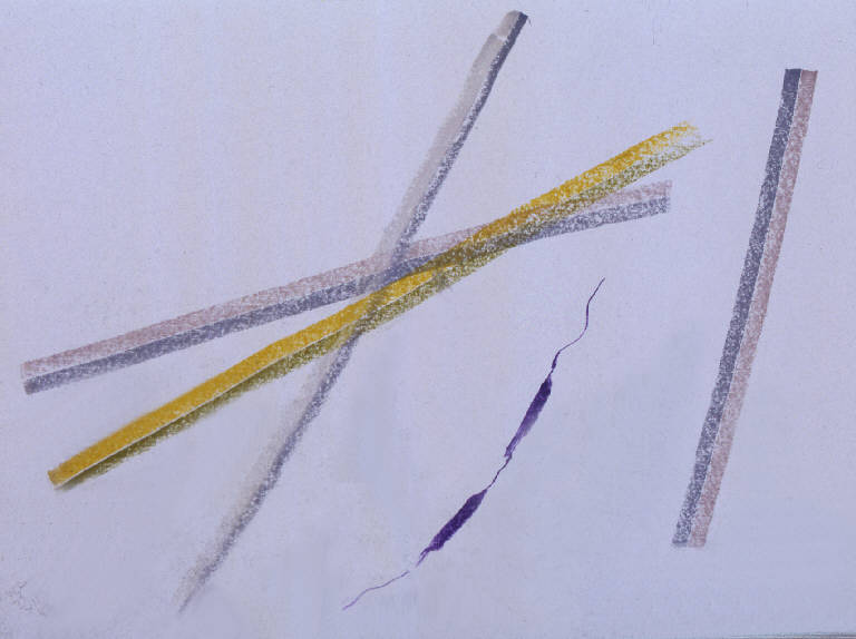 - NOTIZIE STORICO CRITICHE L'osservazione inesausta e quotidiana del paesaggio antistante lo studio trova nei pastelli, rispetto alla pittura, una via rappresentativa del tutto particolare. Gli elementi del paesaggio vengono infatti ridotti all'estremo fino a portare la composizione ad un'apparente astrazione. Tuttavia è possibile riconoscere quegli stessi elementi che caratterizzano i paesaggio della Bassa milanese anche più descrittivi: cielo, terra, canale e filare di alberi. Questi elementi chiave vengono riassunti in un solo segno che diventa la traccia luminosa di ciò che rappresenta. Il resto della composizione, il senso spaziale e atmosferico della stessa, è affidato al colore del supporto stesso che viene ravvivato dai segni ortogonali, curvi o obliqui che lo percorrono.