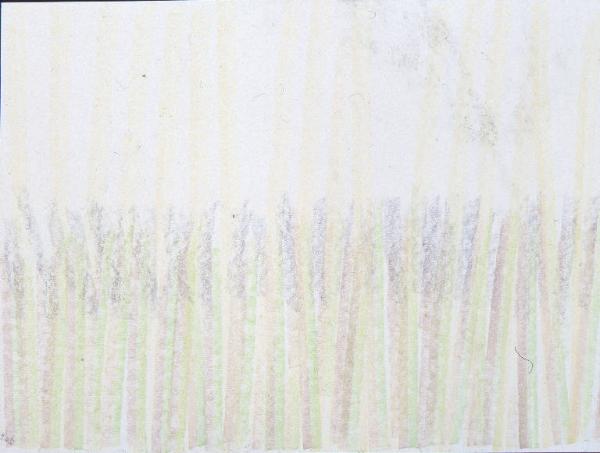 - NOTIZIE STORICO CRITICHE Altra variante del paesaggio è data da una serie di pastelli in cui l'immagine viene descritta mediante una cortina di segni paralleli o quasi, organizzati di volta in volta secondo un'economia differente: ora i segni si fanno più radi e lasciano spazio al fondo e al suo colore, che diventa un elemento più evidentemente costitutivo dell'immagine, ora i segni si fanno più fitti, fino quasi a nascondere il fondo lasciandone intravedere solo alcune linee sottili. C'è anche una differenza ritmica all'interno dell'utilizzo dei segni stessi: una più rigorosa data dall'utilizzo esclusivo di linee parallele, l'altra invece più "melodica" data dall'utilizzo di segni più brevi e ondulati. Di norma in tutti questi casi il paesaggio è dato dal dialogo fra i due elementi costitutivi cielo e terra o dal monologo di uno solo di questi elementi.